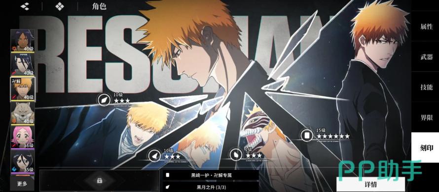 游戏独创了名为“封灭”的拼刀系统,增强了近战对抗的紧张感与操作反馈。同时,对原作中的“万解”形态也进行了精细还原,无论是技能特效还是释放逻辑都贴近动画表现。角色培养体系涵盖抽卡获取、武器强化、装备升级、刻印搭配等多个维度,建议优先集中资源培养主C角色以提升整体战力效率。