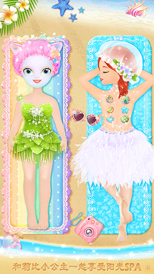 一款专门为儿童设计得换装游戏,它的背景是夏日的沙滩上,你扮演公主,然后在这里开派对并提前装扮好,还有制作派对上所需要的食物,游戏里面有非常多的服饰,比如鱼尾造型的裙子,还有可爱的沙滩连衣裙等等,小朋友们可以自由的去换装,公主之间还可以进行互动,赠送礼物之类的,人物是Q版的都是小朋友们喜欢的造型。