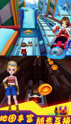 跑酷派对画风很鲜艳,充满派对喜悦感,这里面支持多人组队合作,大家可以跟小伙伴一起闯关,互相配合进行道具收集,场景设计也是梦幻十足,有很多关卡让人遐想万分,每一关的背景音乐都很动感,游戏中还加了趣味互动的环节,大家再跑的时候还可以对对手使用一些道具,让趣味度可以一整个提升。