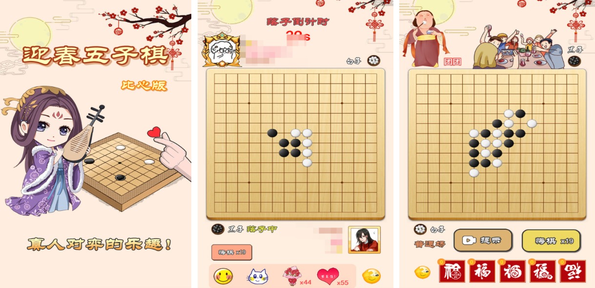 这款迎春版的五子棋游戏互动性极高也可真人博弈,双人进行博弈对战的机制不会让朋友们觉得孤单,单人AI博弈、观战模式等特殊的博弈内容很有乐趣,很喜庆的游戏背景给人提供的休闲气氛也不错,背景、棋盘都塑造的古色古香展现出博弈游戏精髓,双人对战的特殊理念更有快感不会让五子棋爱好者失望。