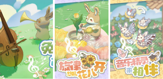 所有的故事发生在特别梦幻的森林场景中,各种乐器应有尽有,从而吸引大量特别可爱的兔子们举办一场大型音乐会。这些兔子都各有自己的优势,有的特别擅长于弹吉他,有的却有优美的歌喉。在兔子们举行音乐会之前,要做足各种准备工作,其次还要给兔子们设立独特的休闲区域,比如种植花园区或者种菜区等等,都可获得丰厚奖励。