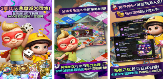 有超级丰富的特色地图,让众多玩家都纷纷的参与其中探索,作为经典大富翁的全新升级版本,较多角色,让你一次性玩个够,其他的大富翁游戏属于单机模式,而此作品属于联机玩法,可以邀请朋友共同参与其中相爱相杀,在千变万化的环境当中中任意游走并探索,有机会从零开始,运筹帷幄,成为首富人生,一切全部都由你来掌控。