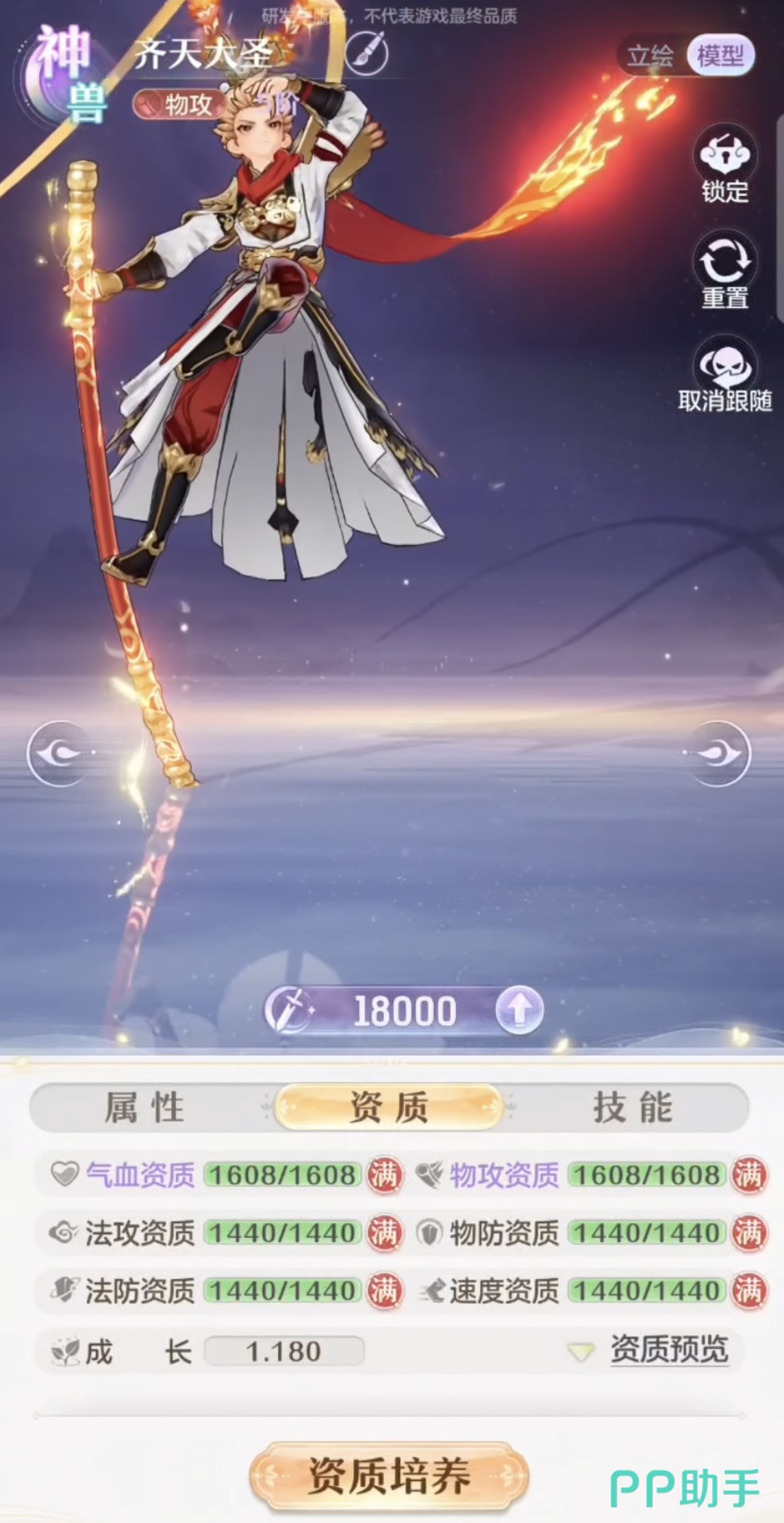 尽管当前版本中神兽资质已锁定为满级,无法手动刷取或重置,但从资质词条的设计可以看出其未来将支持细分化成长方向。若想进一步强化神兽的实战效能,玩家应重点关注属性分配与技能配置。以孙悟空为例,其定位为【物攻】型神兽,因此在属性加成上应优先提升攻击力,同时适当补充生命值,以确保持续作战能力与生存稳定性,从而为角色提供更高效的输出支持。