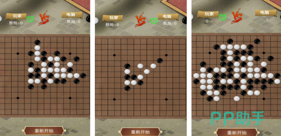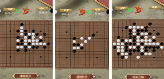 简约的木质棋盘格,由黑白两种不同颜色的棋子组合而成,整体的操作方式也特别简单,大家点击开始之后,就要点击横竖线交叉的点,成功放置棋子。发挥自己的想象力,将自己相同颜色的5颗棋子连成一条线之后就算获胜,但在棋子走向的过程中,也要及时了解对方的棋子的情况。