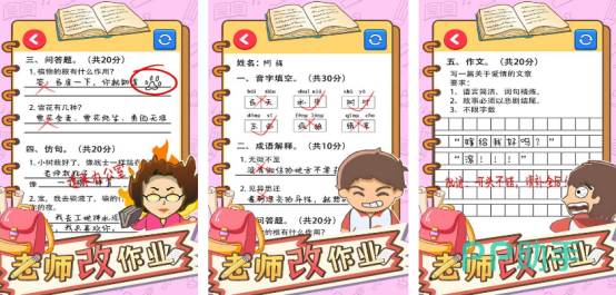 丰富的关卡内容组合而成,你却化身成为优秀的老师,要为更多的学生完成批改作业的任务,每个关卡中都会存在很多的错别字或者是错误的题目等等啊,大家需要仔细观察,寻找到错误的题目,就可以完成闯关,关卡的难度也是循序渐进的,刚开始可能只是简单的错别字而已,还有很多关卡,可能需要让大家用自己的想法批改作文等。