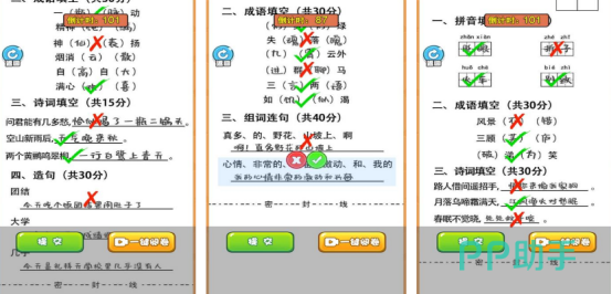 闯关为主要核心,作为老师的你,通过点击对错按钮的方式,就能为其中的孩子们完成判卷任务。卷面上的知识内容特别丰富,比如有成语填空或者是组词连句等等,有很多孩子特别聪明,答案都属于特别正确的状态。但有的孩子试卷上却会出现很多的错题,只要将所有错题全部找到之后就可以点击提交按钮,但是每个关卡中都有规定的时间限制。