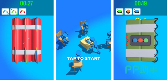 海量关卡组合而成,每个关卡中都有不同的任务和要求,因为在这些炸弹安装的过程中所释放出来的威力不同,因此拆除的步骤也有较大差异,比如在每个关卡开始之后,屏幕正中央都会呈现出不同类型的炸弹,而在上方又会有三个不同的要求和规则,顺利完成其中的一个要求之后,就会有绿色的标记,在规定的时间之内将三个要求全部完成,就可成功闯关。