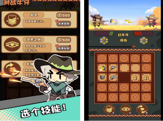 除了自己能在这里面化身为西部牛仔角色,加入到与对手的枪战对决当中,同时还支持好友联机的方式畅玩,整体采用的是非常简约以及竖屏的方式设计,里面有超多的牛仔角色,通过不断选择技能,可以在展开较量的过程当中,展现出自己的强大实力。在每次回合制较量的过程当中,还可以通过记忆卡牌等方式,在回合制当中凭借着战术策略赢得最终的胜利。