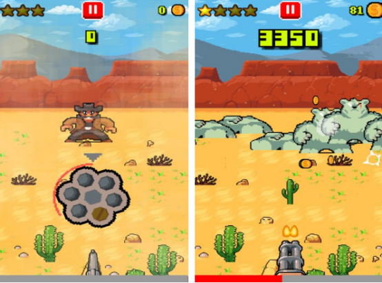充满着简单的设计,你将扮演一名西部牛仔角色,在展开西部环境冒险的时候,会遇到很多的强盗,需要使用自己手中的枪械,及时的扣动扳机,消灭这些强盗,这样才能让自己在西部冒险的过程当中更顺利。虽然里面的牛仔角色设计比较简单,不过操作方式也是非常容易的,通过点击屏幕,大家就可以开启与各种敌人的较量。