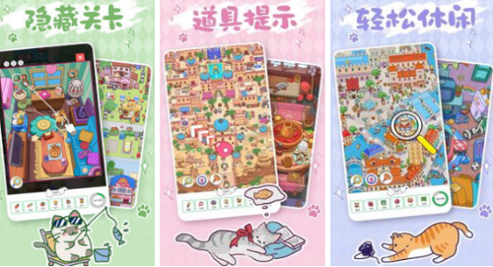 在轻松又治愈的猫咪世界当中享受欢乐与惊奇,这里散落着很多具有特色的小物品,这些都是猫猫的宝藏,要根据关卡当中的实际提示,寻找到适合的物品,详细探索每个秘密角落,需要有极为出色的观察能力和寻找技能的能力,这样才能够在无比可爱的猫咪世界中寻找到隐藏物品,难度逐渐升级,享受无限刺激。可爱的猫咪陪你共同畅玩,也有机会遇到更多可爱形形色色的小猫朋友。