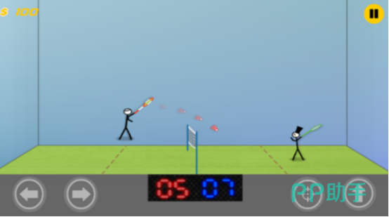 简简单单的火柴人却化身成为羽毛球高手,更考验的是大家的速度以及反应能力。在每个回合中,屏幕上都有具体的控制按键以及双方的分数值展现,左右箭头可可操控人物角色合理移动,右方的向上箭头又可完成跳跃,在规定的回合之中获得分数最高的一方就算获胜。