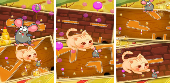 以卡通特色为题材,老鼠具有隐身技能,而猫咪却拥有捕捉能力,老鼠需要在限定的时间内完成特定目标,猫咪则需要阻止老鼠达成目标,具有单人闯关模式,提供多样化特色主题关卡,每个场景都包含独特障碍物和相应的挑战,别致的卡通画风,可爱的角色设计,再加上明亮的场景,增强游戏的趣味性。