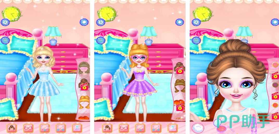这款游戏内,玩家需要帮助小公主进行装扮,挑选出适合去城堡内参加舞会的套装。其中每一款裙装的设计都很华丽,在选好裙子之后,就需要给小公主化妆,玩家可以自由给小公主选择粉底、妆容和发型,最后还可以搭配上一顶闪闪发光的皇冠,等待装扮完成之后还可以对自己的搭配拍照留念。看着耀眼迷人的小公主,玩家心里也会有满满的成就感。