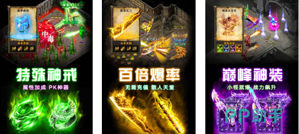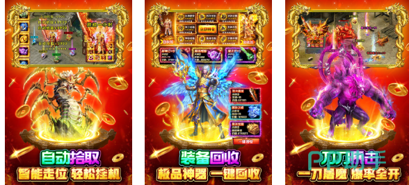 本作是款以魔幻世界观为背景的免费传奇ARPG手游,有着自动拾取掉落装备的特殊性质,也有着刀刀暴击战斗效果带来的酣畅感觉吸粉无数,轻松挂机完成资源获取、强化装备的设定也相当给力,众多极品神器也可在商城中做到一键回收,屠龙刀跟天神翅膀等极品道具只要达到一定等级就可以获得。