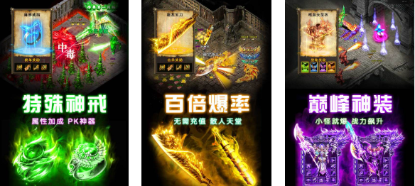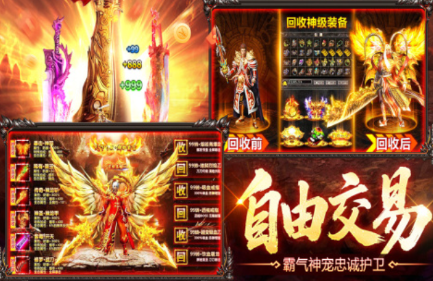 烈火战神是主打自由交易体系都免费版本三职业传奇游戏,角色战斗力成长快速也有着大量爆装的关卡可以参与,超级霸气的神宠加持也助力大家快速提升属性,这款高爆率传奇APP画面主打一个“华丽”,极为炫目的特效跟UI展现吸引了很多画面党,极为多样的爆装备模式也增添了游戏可玩性。