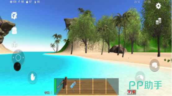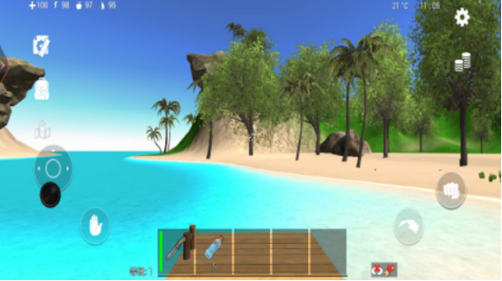 开局后大家就会走入一座孤岛上与世隔绝一周围全部都是一望无际的大海,而海洋中更是有很多饥饿的大鲨鱼,甚至食物来源都成为最大的难题,因此大家需要利用自己的双手制造更多武器,比如建立一艘木筏,到处完成捕猎的任务,其次还要和更多凶猛的野兽展开,疯狂较量。还支持第一人称视角给自己带来极强代入感,具体的屏幕上都有相应的控制按键,比如左右下角有制作武器或者攻击等等。