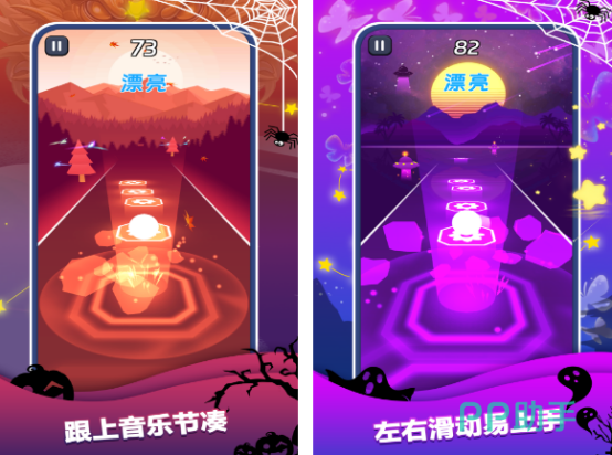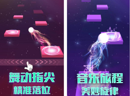 拥有着音乐,通过跟随节奏控制着砖块,不断跳跃的玩法为主,既可以让大家在玩的时候,使用单手就能操。操作,也能进入各种绚丽的场景当中,颜色充满着霓虹的色彩。利用左右滑动屏幕,就可以使里面的砖块跟随着自己移动的方向而跳跃。如果能一直跟随节奏的情况下,就可以让大家获得更高的分数,也要有很好的反应力。