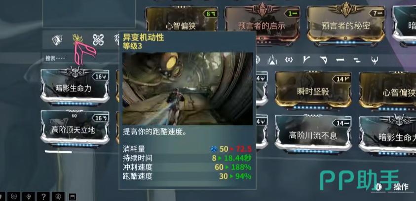 值得注意的是,高斯战甲的一技能“马赫冲驰”本身不依赖强度加成,但其移动效果可受到伏特二技能的加速增益以及花甲一技能的影响。此外,若装备从大嘴移植而来的技能“异变机动性”,将大幅增强跑酷过程中的位移速度,是实现高速流转的关键所在。在启动高速移动前,建议先开启四技能“赤限”,除视觉特效拉满外,还能有效降低技能蓝耗,延长持续运行时间。