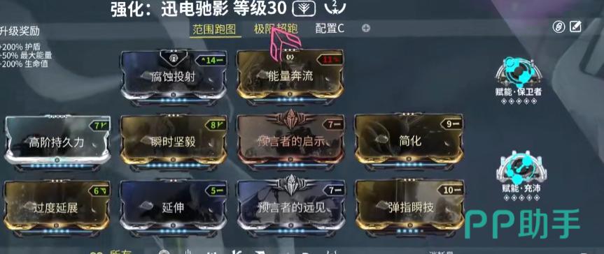 该套高斯超跑流配置以高效地图清理和高速移动为核心目标,兼具实用性与操作乐趣。推荐MOD组合包括:腐蚀投射、能量奔流、高阶持久力、瞬时坚毅、预言者的启示、简化、过度延展、延伸、预言者的远见、弹指瞬技。赋能方面建议选择保卫者与充沛,整体侧重于提升资源续航与范围作战能力,适合日常刷图与任务推进。