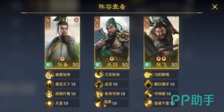 被动技能“德安天下”可在遭受普攻时,有20%概率触发群体兵力回复,若攻击者处于虚弱状态,则触发几率提升至30%。该特性使其在对抗控制流阵容时表现更优。推荐与关羽、张飞组建经典“桃园结义”组合,充分发挥羁绊加成与协同作战优势。