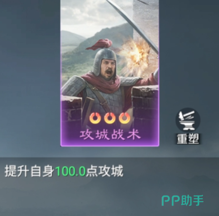 攻城战术这张技能卡其实具有一些特殊用法,一般情况下大家如果是打架的话可能用不上,但是如果是去攻城的话,那么其他的卡反而没有这张卡那么好用,在上面这张卡可以为装备这个技能卡的武将带来100点的攻城数值加成,让大家攻城的时间更快优势会更大,但是这类技能卡其实很多玩家前期是拿不到的,因为此时大家更关注的是一些战斗类型的加成效果,所以针对攻城卡后期的用处会更大一些,但是那个时候再获取的话难度也比较大,所以如果拿到攻城卡的话,其实大家就可以放起来,后期需要的时候再用。