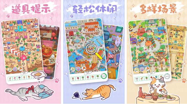 本作是款玩起来难度很高的一款竖屏找物单机类游戏,你要在很复杂的地图中尝试寻找各类任务目标,但寻找的途中会遇到很多捣蛋鬼小猫猫的骚扰,很有趣的找物互动设定培养了玩家的耐心和观察能力,多种多样的场景设定繁杂也带来超爽代入感,还有许多的提示功能和道具加持帮助大家找到目标道具。