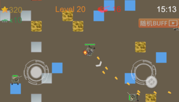 这是一款坦克车主角的上帝视角弹幕射击类游戏,通过发射弹幕的方式控制坦克车战斗的理念极为独特,双轮盘的割草战斗设定也为游戏润色不少,各类迷你小坦克的出现让无数坦克爱好者流连忘返,弹幕射击效果酷炫也有着极为强烈的打击感,加入了许多的坦克武器和buff加持,足以让你的坦克车战斗力快速飙升,还设定了形形色色的地形掩体可以利用上。