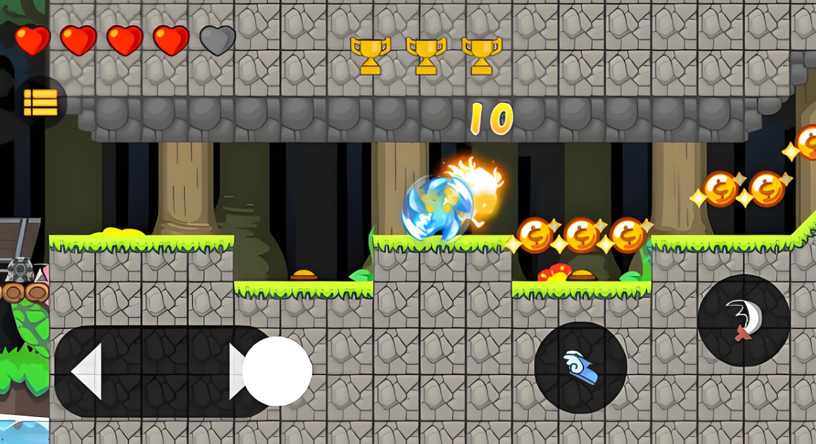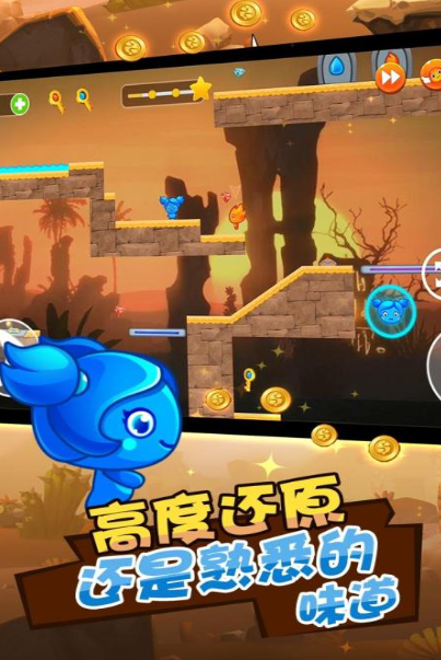 在这款游戏中,玩家将指挥冰火侠穿越重重险境,沿途可拾取红宝石来提高分数。关卡内容丰富,足够支撑长时间游玩而不觉乏味。途中会遭遇外形凶猛的野兽敌人,必须及时清除,考验玩家的操作敏捷性。每个关卡中的机关布置各具特色,绝不重复,确保每一次挑战都充满新鲜感与探索欲。