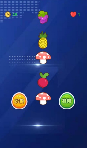该游戏专注于提升玩家对常见水果和蔬菜的识别能力,采用快速分类机制带来轻松挑战。整体画面采用鲜艳的卡通风格呈现多种蔬果形象,如萝卜、蘑菇、西红柿等日常食材均有涵盖。玩家需依据现实中的品类特征进行准确归类,点击完成匹配即可获得积分。虽然对成年人而言难度较低,但对幼儿及青少年具有良好的科普教育价值。