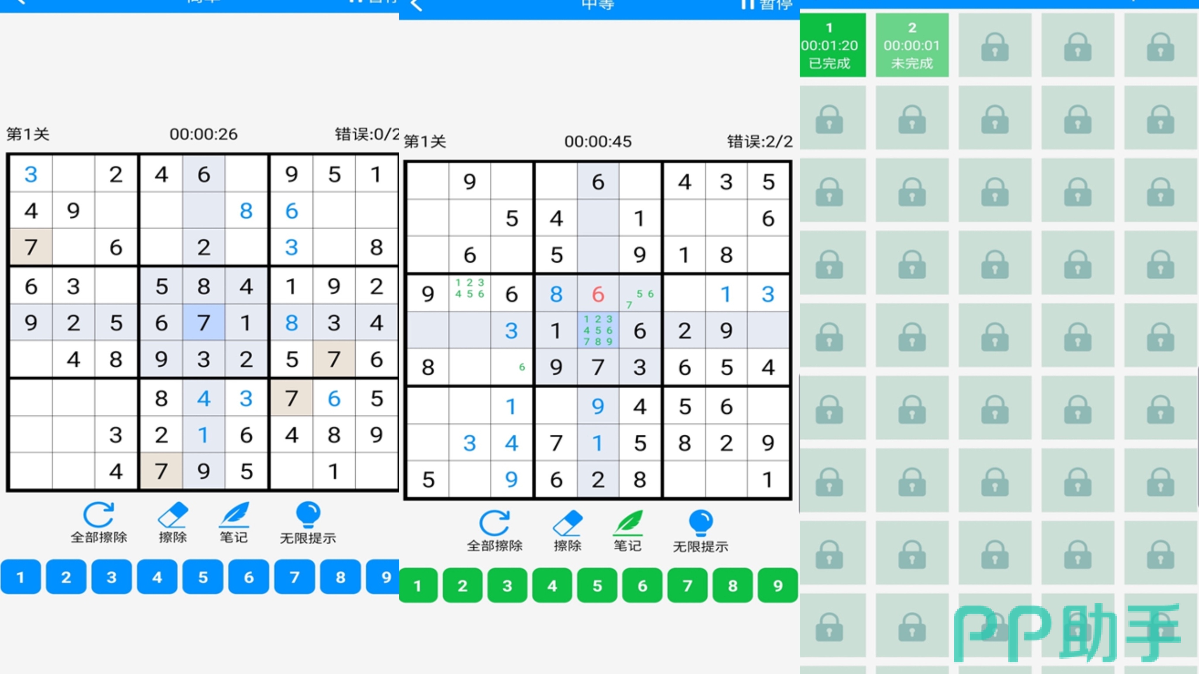 《数独王者》是一款融合多种玩法的益智闯关游戏,核心为经典的数独填数规则。玩家需确保每一行、每一列及每个九宫格中的数字1至9不重复出现。游戏不仅支持传统的九宫格模式,还引入了四宫格、六宫格以及对角线数独等变体形式。更有创新性地结合图形元素、汉字符号等主题玩法,带来耳目一新的解谜体验。
