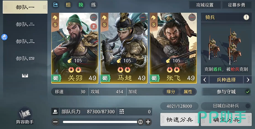 在五虎队里面大家可以用到的角色是关羽,张飞以及马超,那么在这里搭配的话,他们主要是利用自身带来一个重伤的加成,可以带来的骑兵能力其实是非常适合这个阵容使用的,那么在游戏当中大家用关羽来作为主将,就会有足够的武力值,在这个阵容进行搭配的时候,大家也要注意其中武将他们因为能力上面不太一样,所以可以搭配的技能也是不太一样的,这里在技能效果上面,大家根据他的能力来进行选择的话,可以根据他当前的不同定位来选择,因为很多玩家会把马超当做主将,当然也是可以的,这三个角色其实哪一个做主将都可以。