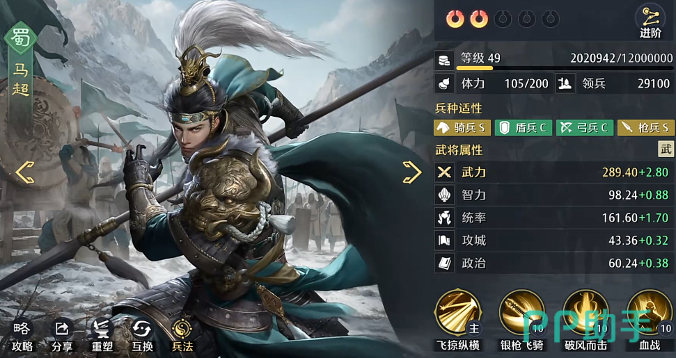 在其中搭配的武将条件在比较好的情况下面,其实大家能够带来的阵容效果里面是以开荒为主要的一个能力,这里在实战当中大家也要注意这样的效果当中要注意,不能一上来就直接打,因为每一个武将他的效率是不一样的,所以要找到自己最适合的顺序,这里阵容体系当中,大家能够用到的前期搭配其实是比较完善的,因为这个阵容当中的每一个武将在作战效果上面,大家可以利用到的技能也有很多威压数值,次数数值高的技能可以压制住对方,那么提前用的话就用这些压制技能来克制住对方,比如说对面如果上徐晃这个武将的话,其实可以用着的克制效果来打。
