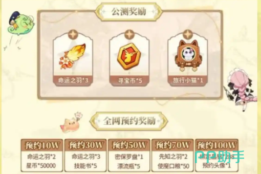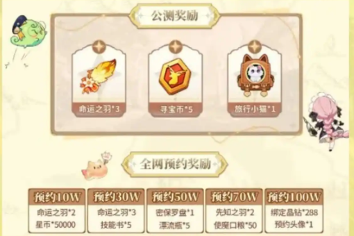 公测福利还是比较丰富的,现在只需要输入兑换码,就可以获取,能解锁基础的福利,并且还会有专属的礼包。在专属的礼包中,有道具,还有资源,就可以直接一键到账,让玩家在冒险时会变得更加的顺畅。还有等级冲刺福利,如果账号下面第1个创建的角色升级到37级,就可以在邮箱领取全网预约福利,还有公测奖励。在公测专属奖励中就会包括命运之羽,而且还有三个,另外还有超萌伙伴旅行小猫。