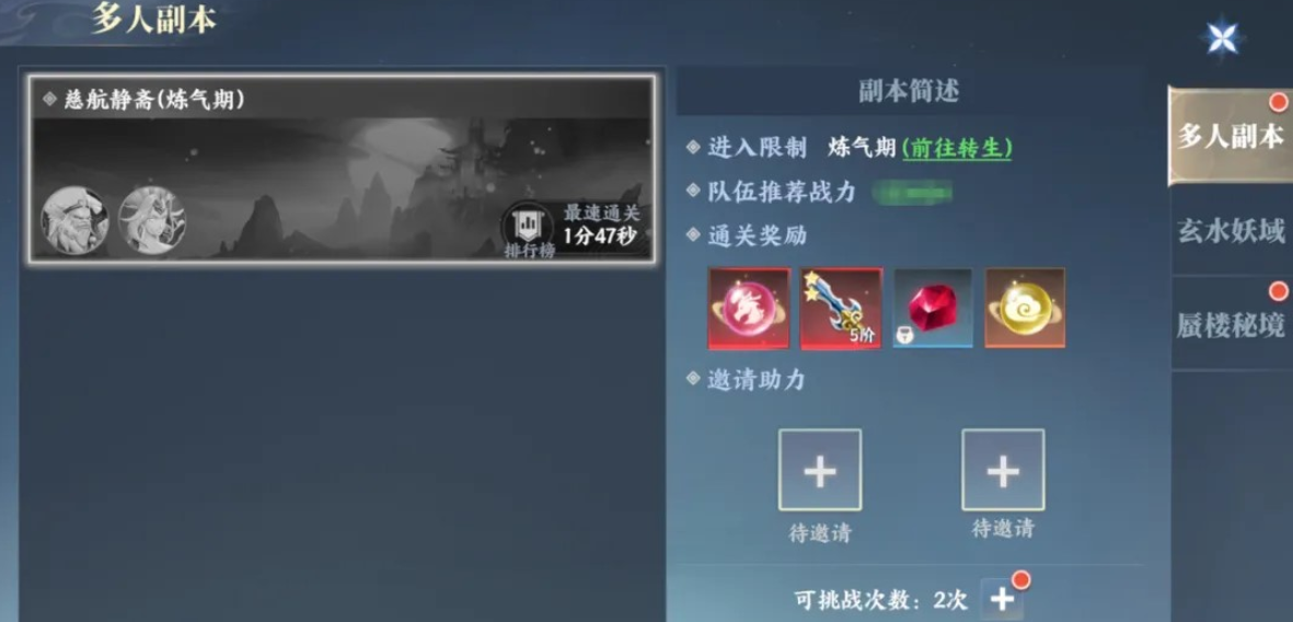 副本数量也是相当多,新手建议前往“经验副本”,此处能快速获取经验升级,而且方法非常简单只要进入刷怪即可,怪杀的越多能拿到的经验也就越多,有需要的可以带上经验药水一起进入,让拿到的经验进一步提升升级更加快速,当然如果想体验并肩作战的快感,也可以去多人副本,这里每人每天有2次进入机会,叫上战力高好有默契配合能拿到超多奖励。