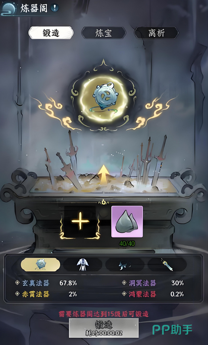 炼器阁的核心用途是通过消耗特定材料来炼制各类法器,从而增强角色实力。游戏前期由于炼器成功率较低,普通法器的打造成功率仅为67.8%,导致不少玩家觉得该系统产出性价比不高,容易被搁置。然而当炼器阁等级达到15级后,将解锁关键功能——锻造系统。此时只需消耗鬼将颅骨等资源,即可进行快速锻造,每次仅需2秒便能获得一件装备,涵盖武器与防具等多种类型。