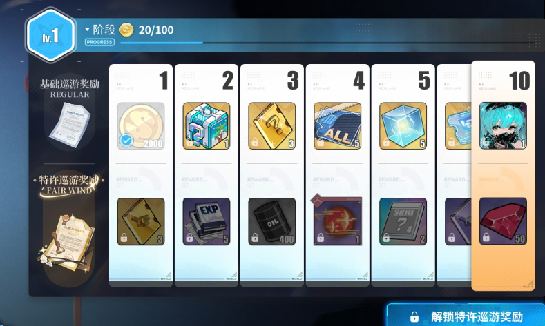 碧蓝航线每两个月会开启一次“世界巡游”活动,类似于其他手游中的通行证系统。玩家通过完成一系列巡游任务来获取奖励,其中包含免费与氪金两种类型的奖励内容。本期新增角色为树城meta,该角色实际即为博伊西meta,其原型是白鹰阵营布鲁克林级轻巡洋舰,后缀“meta”代表其为特殊变体形态。
