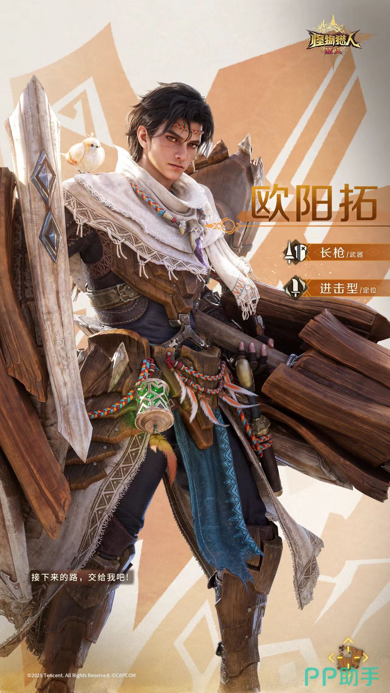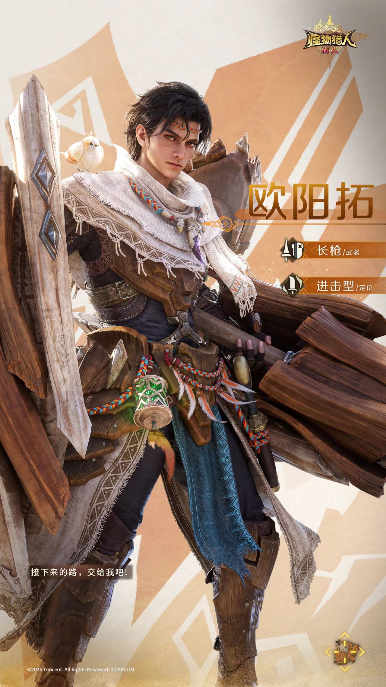 欧阳拓是近期官方公布的一位全新可操作角色,其使用的武器为长枪,职业定位属于进攻型冒险家。他在队伍中主要承担高爆发输出的任务,擅长在短时间内对怪物造成大量伤害,特别适用于限时讨伐或挑战高难度副本的场景,在团队作战中具有不可替代的战略价值。