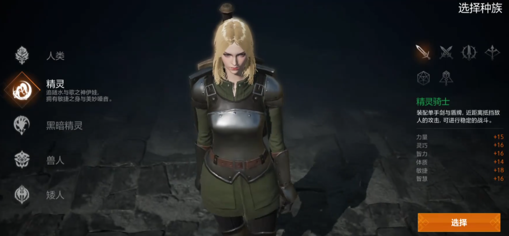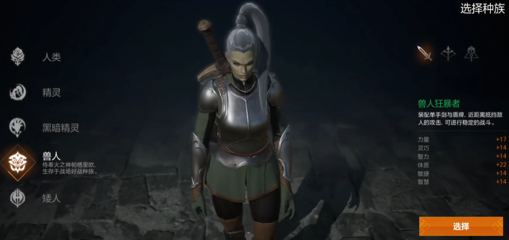 种族选择对单手剑流派影响显著。若专注于纯坦克定位,推荐选用精灵族,可获得大量防御属性加成,显著增强生存能力;若倾向半坦半输出路线,人类是更优选择,适应多种战斗环境;而追求更高力量值与持续作战能力的玩家,则建议选择兽人族,以提升物理爆发伤害。