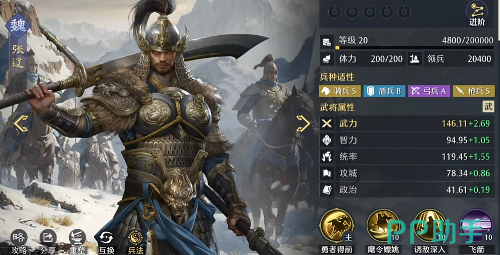 第二位推荐的是张辽,其在突击型阵容中具有重要地位,常作为主将或辅助型输出存在。当与夏侯渊形成联动时,整体爆发能力显著增强,能够在短时间内打出高额伤害。张辽的机制设计较为成熟,实战中需结合智谋兵法类技能进行加成,以充分发挥其战术价值。尽管对操作有一定要求,但只要搭配得当,便能在多种竞技与推图场景中展现强势表现。