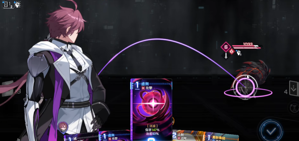 尽管凯隆的基础攻击力偏低,但其生命值与防御成长具备一定提升空间,整体生存能力较为稳定。角色共拥有8张核心卡牌——4张普通卡与4张特殊卡。普通卡包括两张面、一张救以及一张名为“虚无残影”的功能卡;而四张特殊卡分别为:消灭烙印、黑洞、虚妄的誓约、无忧的回声。凯隆的核心玩法围绕“虚无”展开,这是一种无实际效果的一费异常状态,但在“虚妄的誓约”加持下,可转化为兼具伤害与治疗能力的功能性攻击卡,成为其在卡洛斯高难度内容中立足的关键所在。