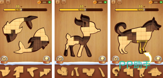 不同于传统拼图类游戏,这款游戏采用立体视觉风格呈现,主题包含狼、鲨鱼等可爱动物形象。界面下方提供若干几何形状的方块,玩家只需用手指拖动并将其放置到正确位置即可完成拼接。操作简单直观,但需要细致观察和空间判断,有助于提升孩子的逻辑思维与专注程度。