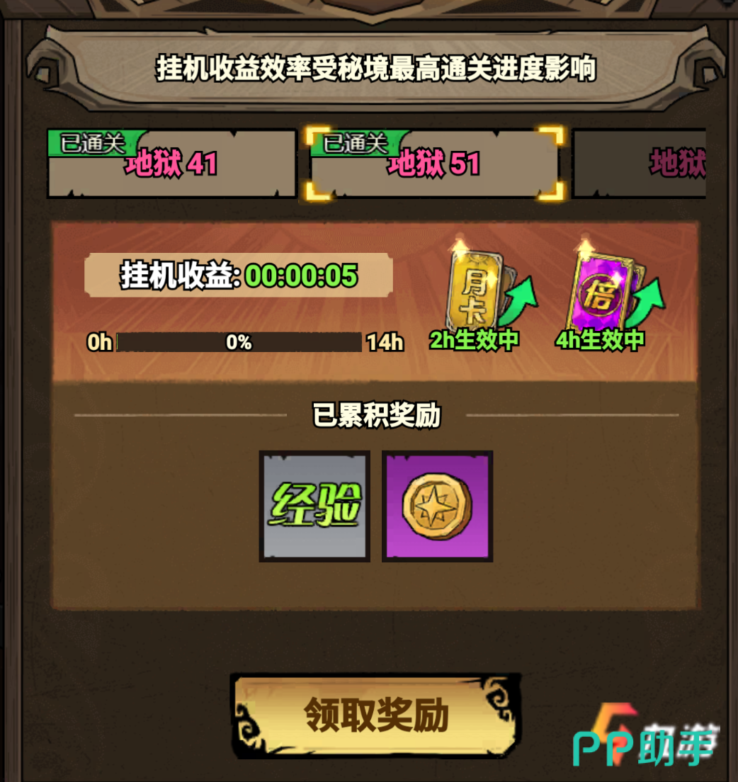 离线收益:完成主线章节后,自动解锁挂机功能。挂机奖励随主线进度持续增强,是经验与金币的核心稳定来源。若希望最大化收益效率,可选择开通月卡及倍率卡服务,额外获得每日6小时挂机时长加成,显著提升单位时间产出。