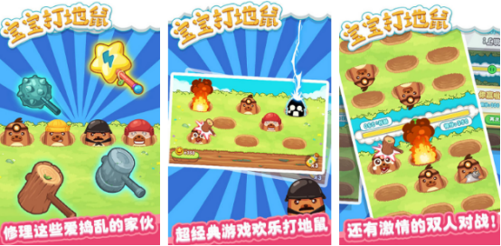 专为儿童打造的节奏反应游戏,操作简单直观,只需点击屏幕或挥动虚拟锤子即可打击冒出的地鼠。游戏节奏适中,既能锻炼孩子的反应力,又能增强自信心。支持双人对战模式,家长可与孩子一同参与,在欢乐中增进感情。除了主打玩法外,还包含多个寓教于乐的小环节,丰富整体游戏体验。