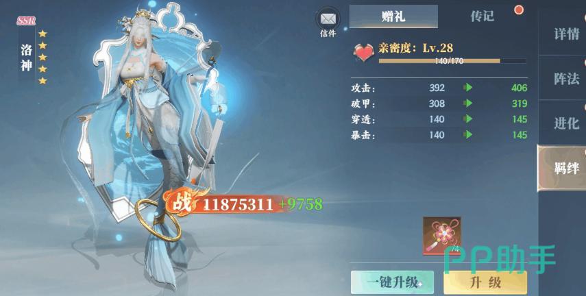 推荐上妲己、朱雀、洛神都是输出向的,pve通常不是太缺生存,因此大多玩法里把伤害拉满就行了,比如说朱雀这种有大范围涅槃雨技能的妖灵。妖灵觉醒后可以在战斗中积攒灵气释放关键性的觉醒技能,消耗本体或是其他材料还能进化,进一步提升属性和技能效果。此外,还能提升其好感度,带来更多属性加成。