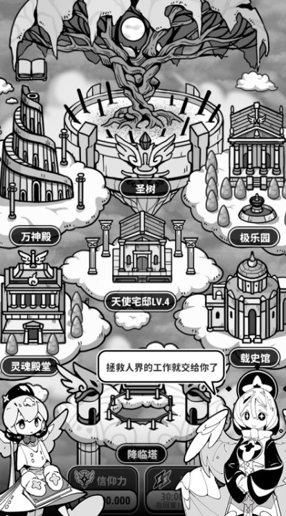 在游戏中,玩家化身为神圣的天使,肩负起拯救命运短暂之人的使命。核心目标是通过不断升级来强化自身能力,从而更有效地庇护那些处于危险中的生命。随着等级提升,将解锁更强力的技能与防御机制。整体画面采用黑白基调呈现,营造出庄重而压抑的视觉氛围,突出主题的严肃性与神圣感。