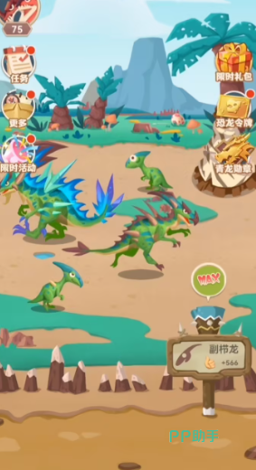 该游戏融合了奇幻与魔法元素,赋予恐龙全新的形象设定。玩家需要经营一座独具特色的恐龙主题园区,吸引游客参观的同时,悉心照料园内的小恐龙。游戏中设置了丰富的互动机制,轻触屏幕即可触发小恐龙摇尾、发声等反应,互动体验自然且富有童趣,极具吸引力。