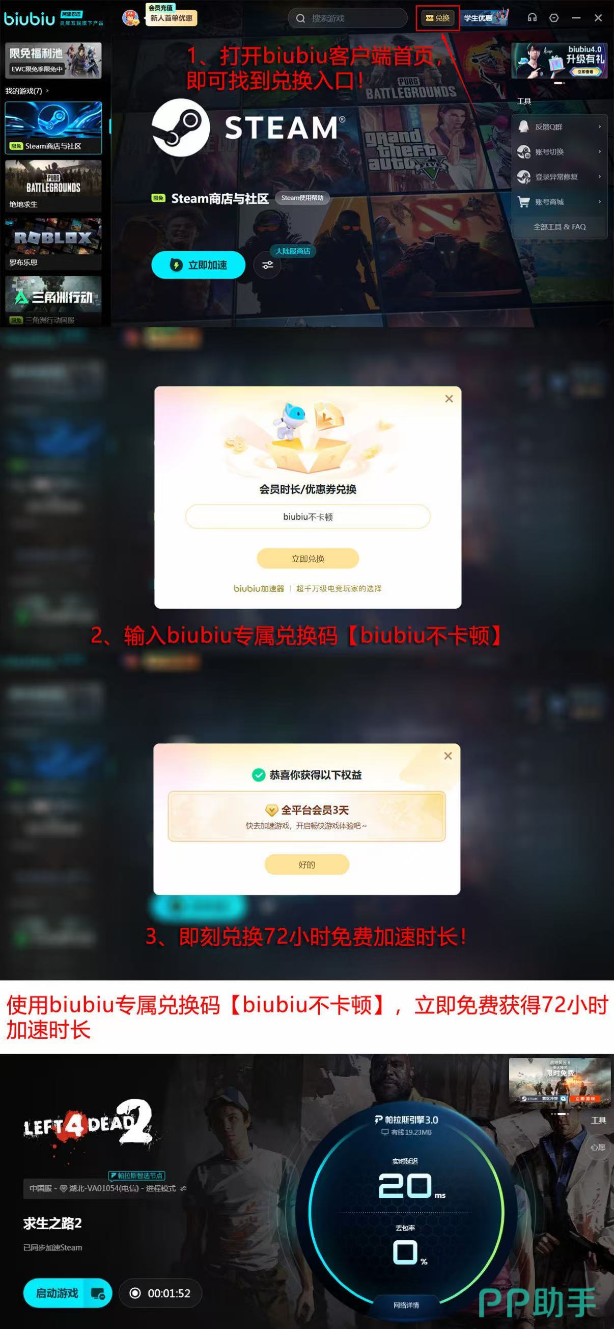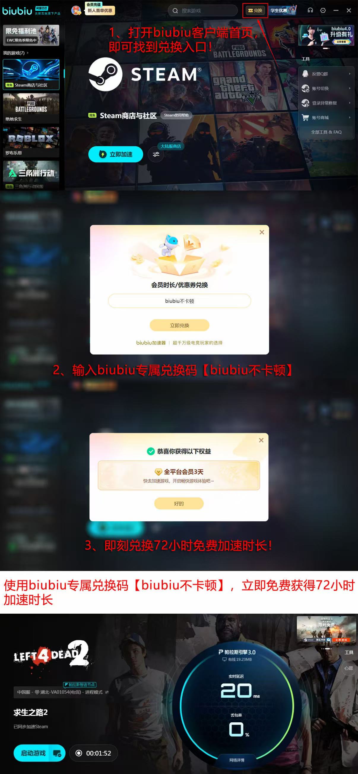 目前正是体验biubiu加速服务的好时机。新注册用户即可享受24小时免费加速权益,畅玩国内外热门游戏无压力。更有福利活动面向所有用户开放:无论新老账号均可凭兑换码【biubiu不卡顿】领取3天免费加速时长。除此之外,平台还推出学生专属优惠、限时免加速游戏池以及惊喜掉落奖励等多重活动,帮助玩家以更低成本享受高品质网络服务。