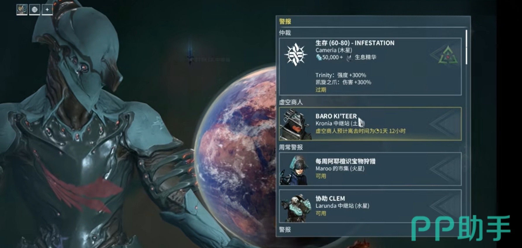 除了依靠地图定位外,还有多种方式可帮助玩家迅速锁定虚空商人的行踪。首先,在他抵达前,系统会通过邮件通知玩家具体的上线时间及所在中继站名称,部分邮件甚至附带一键传送功能,点击即可直达;其次,打开游戏内大地图后,各中继站中央广场会出现明显的商人图标,支持自动导航前往;此外,警报界面也会实时更新他的出现地点,确保玩家不会遗漏每一次交易机会。