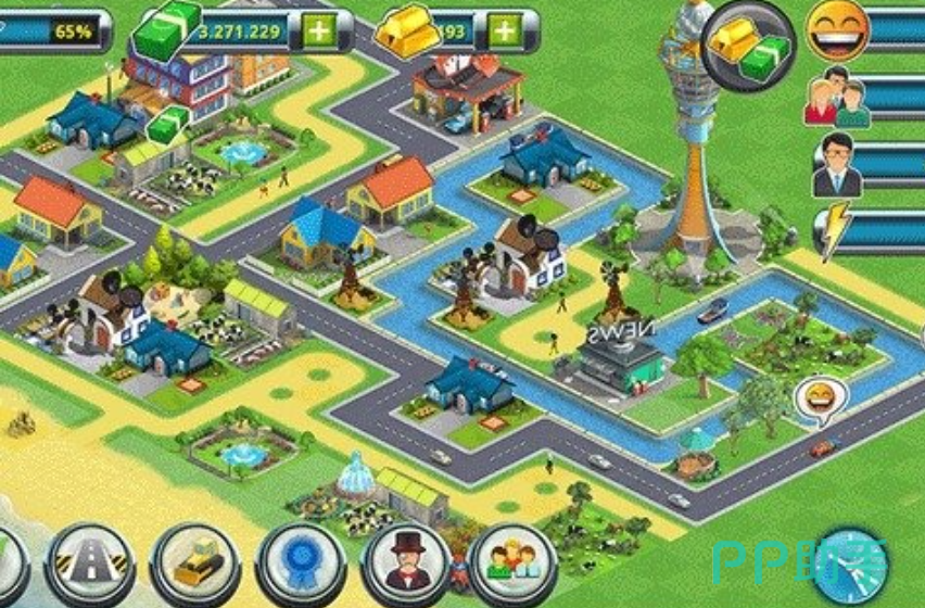 这是一款深度策略向的城市建设模拟游戏。开局即拥有广阔待开发地块,玩家需统筹规划住宅区、交通网络、公共服务设施及产业用地。推荐发展路径为:优先建设基础住宅吸引人口迁入,再配套建设学校、医院、工厂等功能性建筑,形成可持续运转的城市生态。各类建筑持续产出金币,可用于拓展土地、升级设施或解锁高级蓝图。内置任务体系涵盖基建、人口、经济等维度,完成目标可获得金币、稀有图纸及特殊装饰物等奖励。