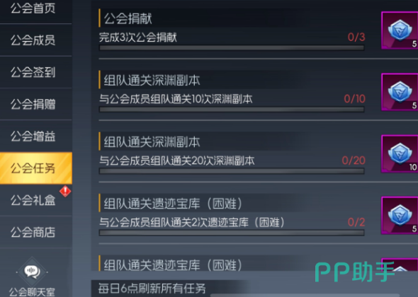 最后一项是公会任务系统。每日早上6点,任务列表会统一刷新,任务内容简单易完成,但每位玩家每天只能接取并完成一项任务。完成指定目标后即可领取奖励,这是稳定获取游戏资源的重要渠道之一。积极参与各项公会活动不仅有助于个人实力提升,也能推动整个公会的整体发展。
